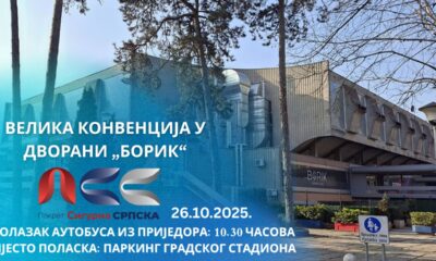 U dvorani “Borik” u Banjaluci, u 13 časova, biće održana svečana Konvencija Pokreta sigurna Srpska, nakon čega su u 14.15 časova predviđene izjave za novinare.