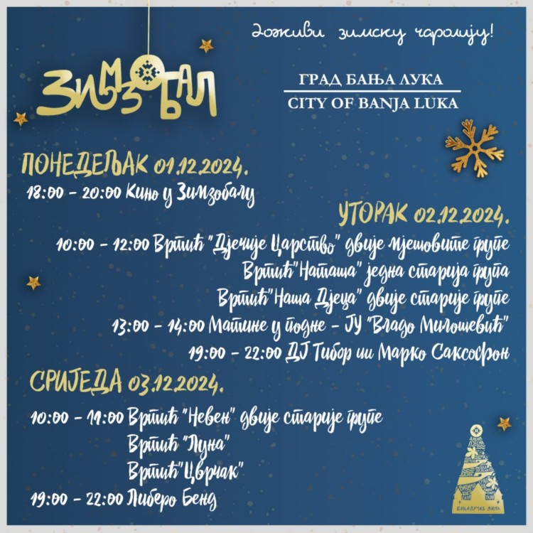 Banjalučka zima odnosno “Zimzobal” donosi sjajan program za sve sugrađane i posjetioce tokom ove sedmice.